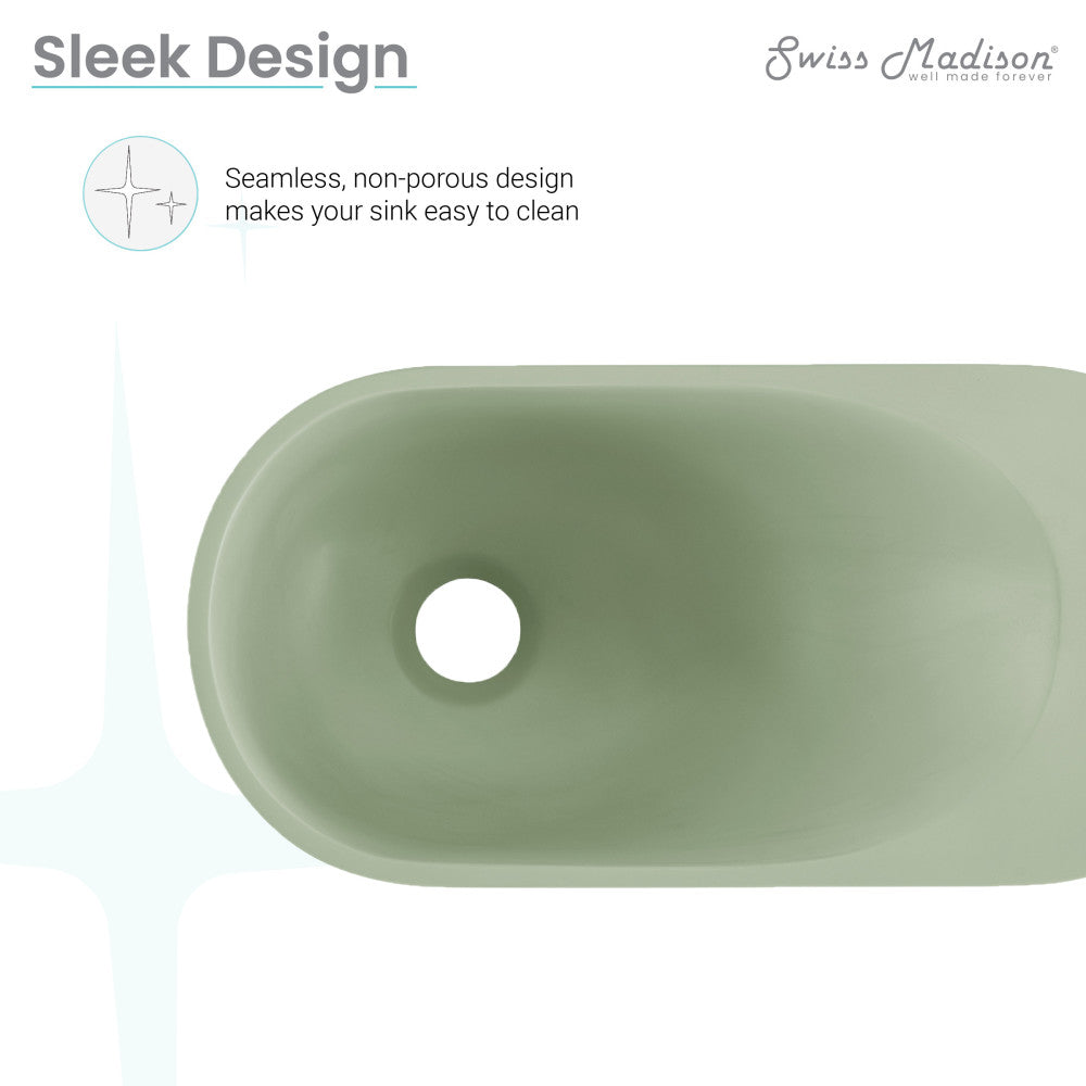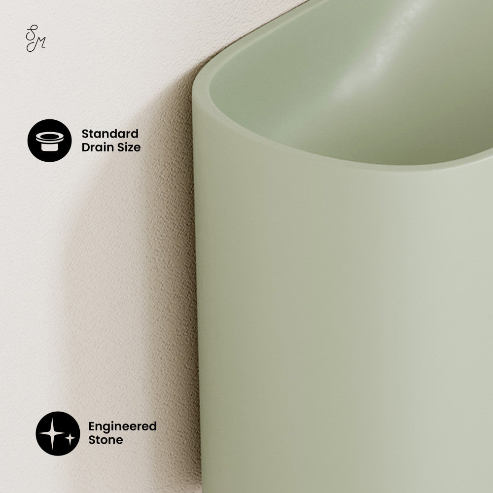 Immerse yourself in the elegance of earthy hues with the Terre collection, creating a grounded and tranquil ambiance. Embrace contemporary simplicity with our wall-mount sinks, combining space-efficient design and innovative aesthetics creating a sleek and functional environment. Offered in palm green with a matte finish.