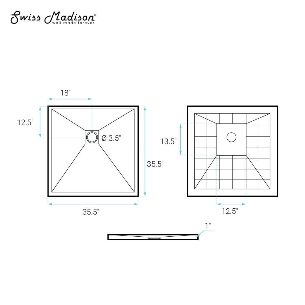 - Sold Separately: Shower drain is not included.
