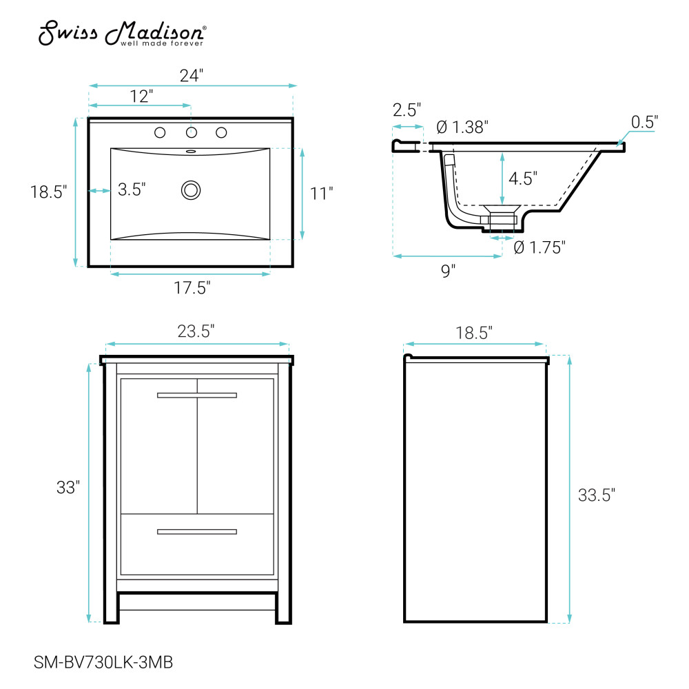 - Faucet hole: Pre-drilled standard 1 3/8"