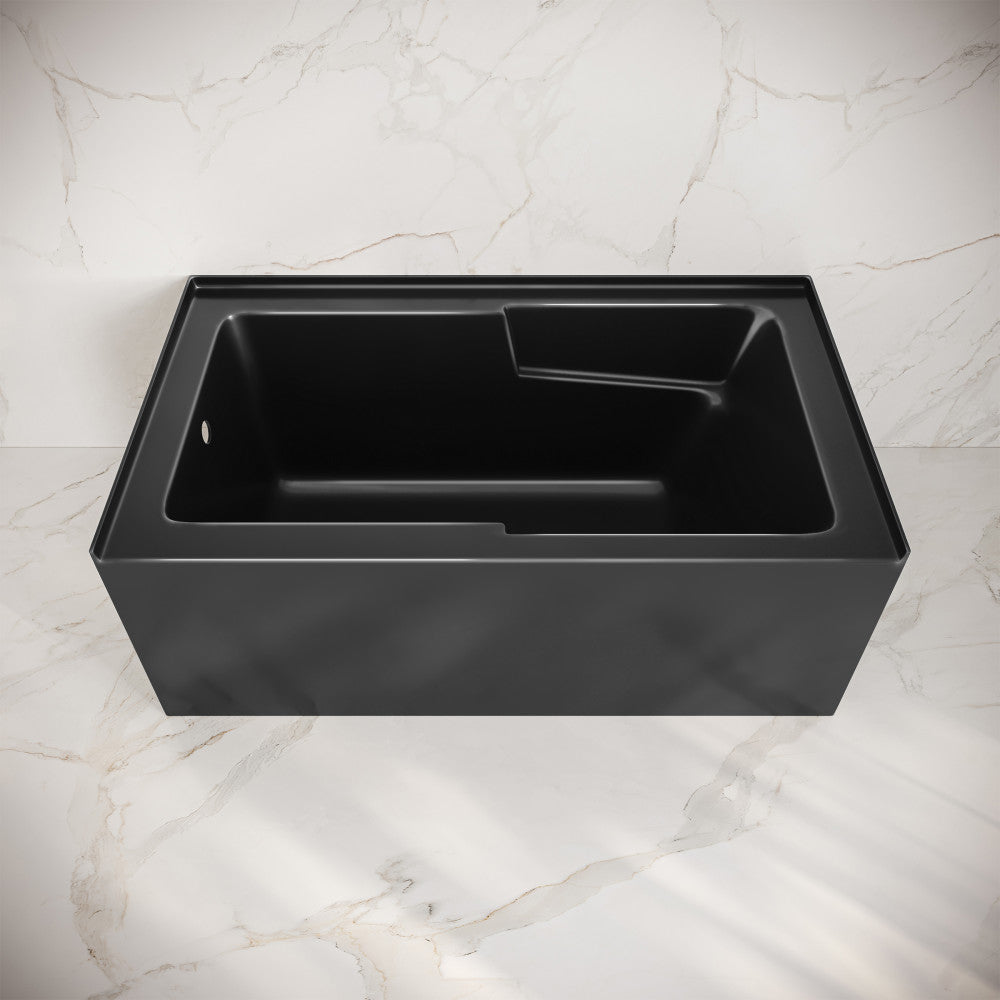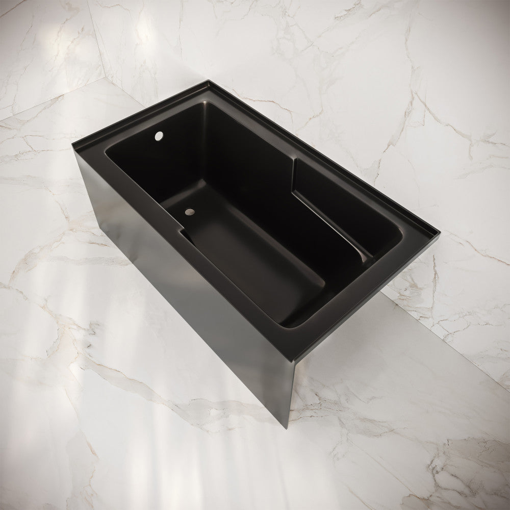 Voltaire 54 x 30 Skirted Left Drain Soaking Alcove Bathtub in Glossy Black with Integrated Armrest