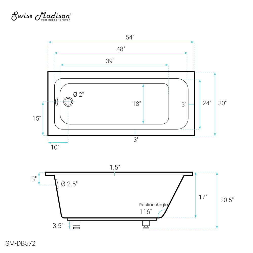 - Drop In: Without the tile flange, this tub is reversible and aesthetically pleasing.