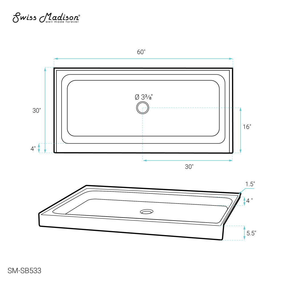 - Sold Separately: Shower drain is not included.