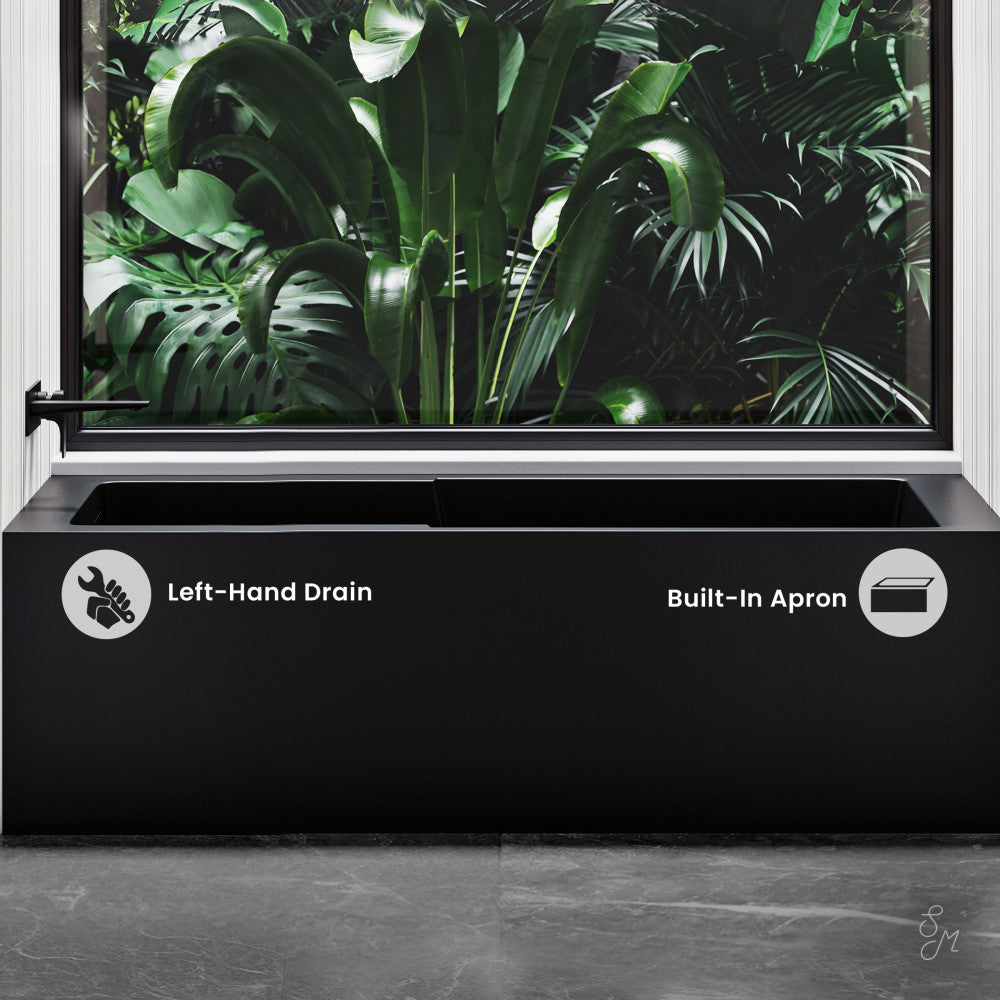 Embrace timeless elegance with the Voltaire collection, fusing classic charm with contemporary comfort. Immerse yourself in the timeless charm of our apron bathtubs, featuring a modern design that enhances your bathroom aesthetics and provides a comfortable and inviting space for indulgent relaxation. Offered in black with a matte finish.