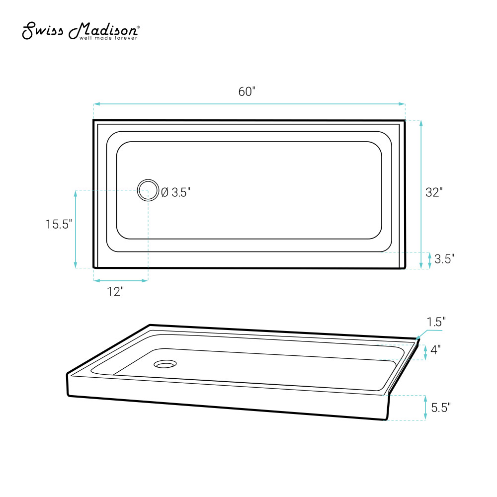 - Sold Separately: Shower drain is not included.