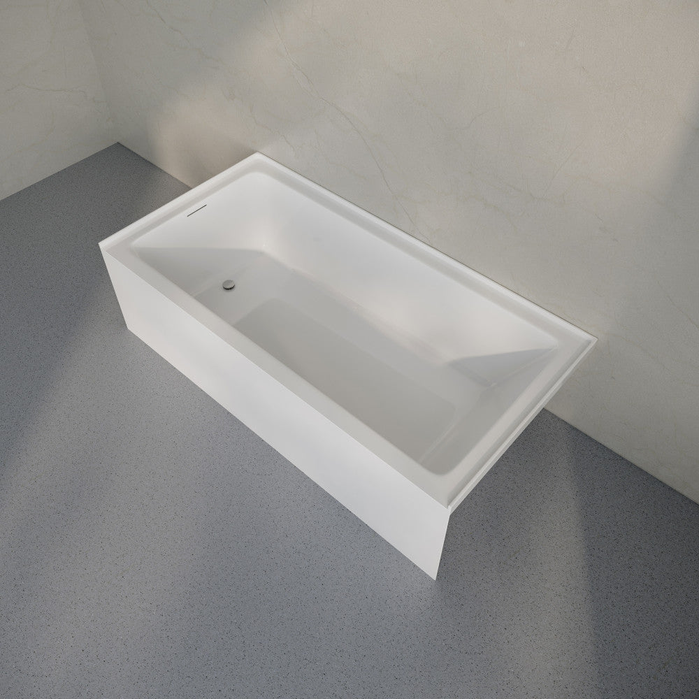 - Built-in apron: Bathtubs with built-in aprons streamline installation with a preinstalled front avoiding the need for tile.