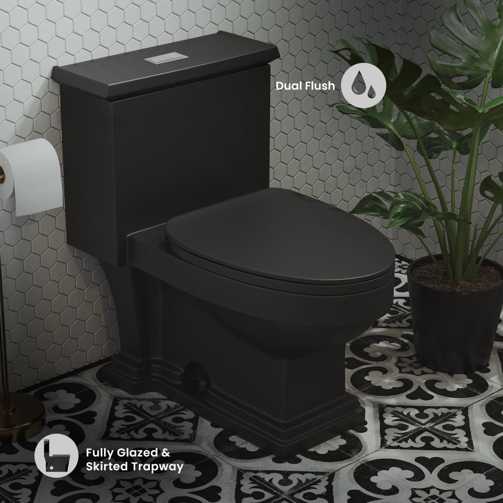 - Fully Glazed and Skirted Trapway: The skirted trapway offers hidden plumbing creating an elevated and luxurious design with a smooth finish for easy cleaning. The fully glazed trapway prevents clogs and keeps water flowing freely.
